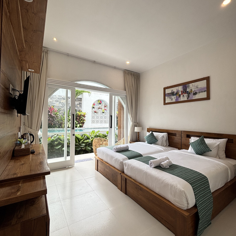Nestled in a peaceful area, Jasmine River Guest House offers 11 cozy rooms with breathtaking views of lush rice fields. Our guest house is designed to provide a relaxing atmosphere, perfect for travelers seeking comfort and nature. Join us for an unforgettable experience. At Jasmine River Guest House, immerse yourself in the tranquility of nature. Experience stunning rice field views and enjoy just a 10-minute walk to the beautiful Lima Beach. Your serene getaway awaits!